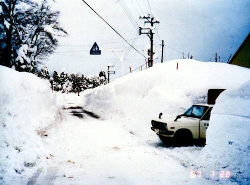 This photo is a usual Cherry Path taken last Wednesday, April 1st. Kin-ken Center is seen *on the left deep side. The cherry trees standing *in a line on the right are 32 years and a little over, because…They were planted in 1983 (Showa 58) when Arai (present Myoko) Culture Hall was being built.