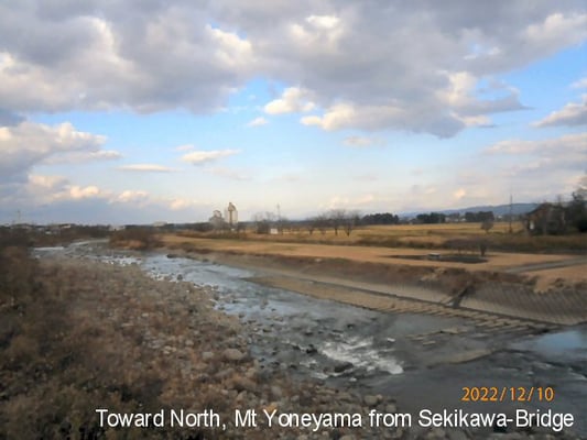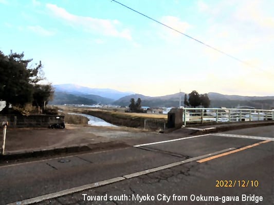 <0r: 関川橋より北方、佐渡島(見えないが)方向、これより西条地区:Toward north, Sado Islands (invisible) from Sekikawa Bridge; Nishijo District starts from here.>
