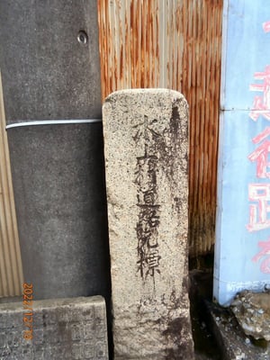 <0v:「水上村道路元標」(多分明治時代のものか): The stone monument, “Redistricted Sign of the road of Mizukami Village” (maybe from Meiji era.)>