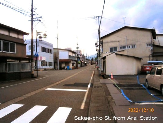 <0g: 新井駅北端より三村屋旅館方向:Toward Mimura-ya Inn from the northern edge of Arai St.>