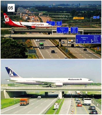 05:Airplanes rolling over highway at Leipzig-Halle Airport in Germany