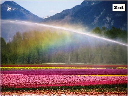Z-d: A rainbow over tulip fields, British Columbia, Canada.
