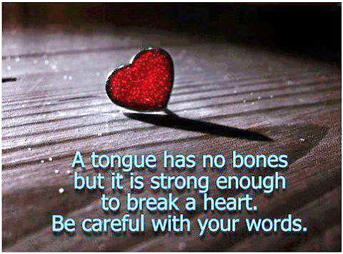 A tongue has no bones but it is strong enough to break a heart. Be careful with your words.
