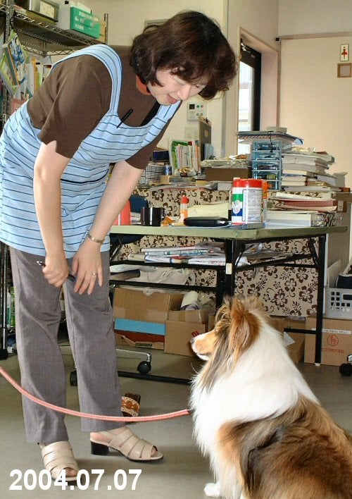ヨッシーの愛犬、エリーが「美味しそう!」と見とれています。