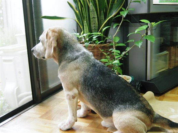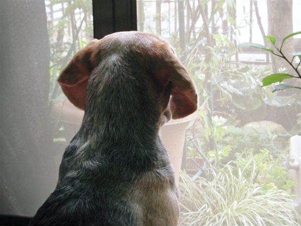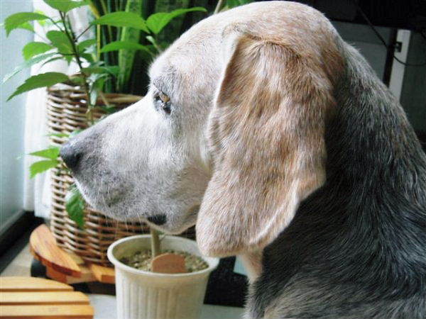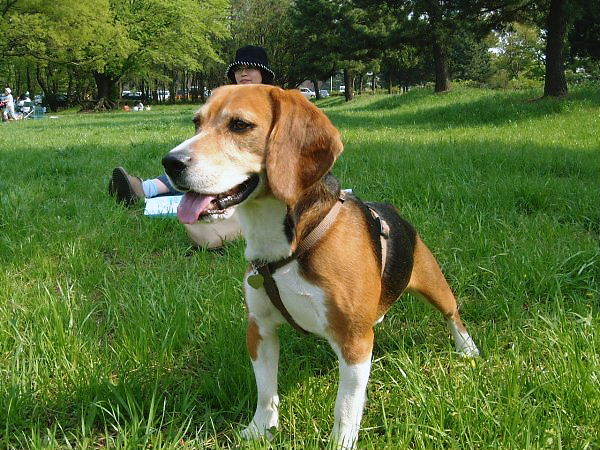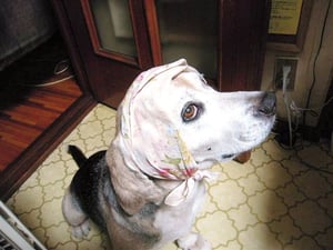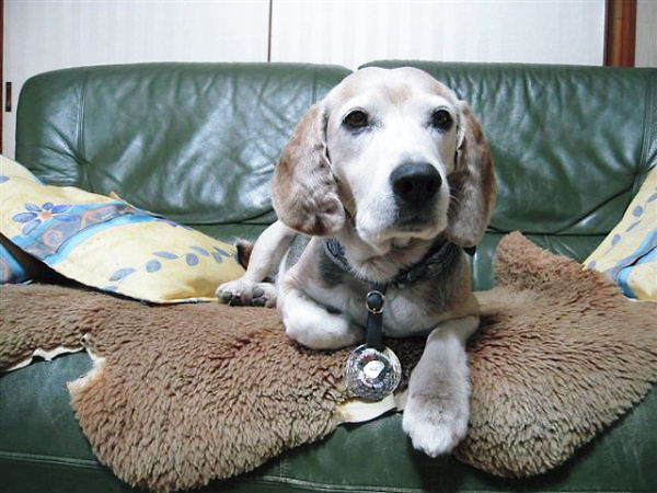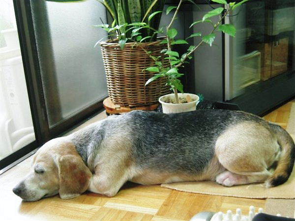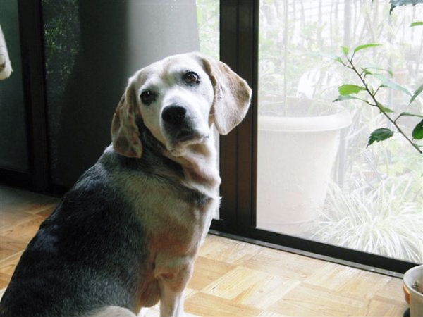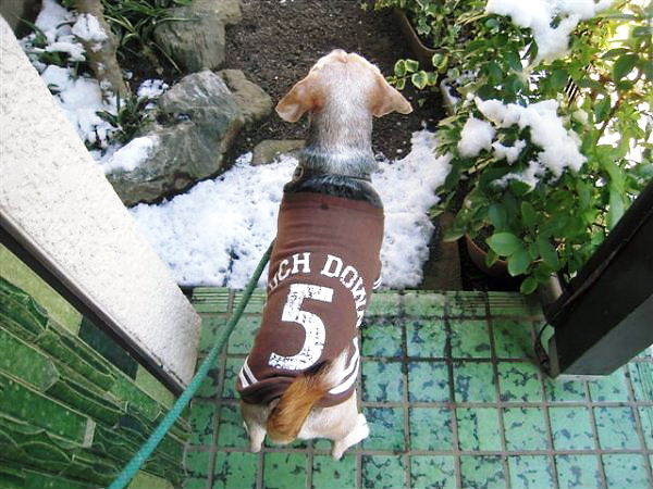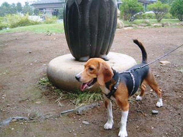 あまりの暑さに、散歩の帰りには「アイスノン」を首につけてもらっています。