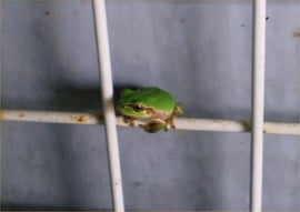 LL菜園に実がなり始めの梅雨時は、雨蛙がたくさんLLシホヤ新井教室にまで遊びにきます。