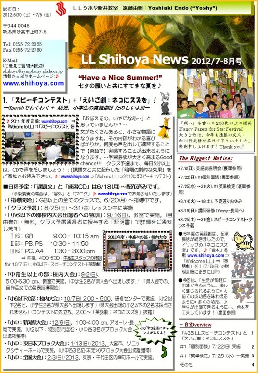 This latest LL Shihoya News is going to be handed in to LL students from this Saturday.
