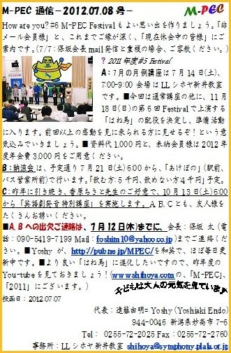 You who are not a member of M-PEC yet, please contact with Yoshy!