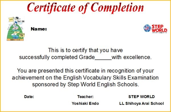 LLシホヤ新井教室の主に、プライマリークラスは、クラスレベルに合った「9級~特1級」を、年3回、実施しています。