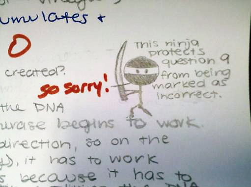 This ninja protects question 9 from being marked as incorrect. – Zero. So sorry!