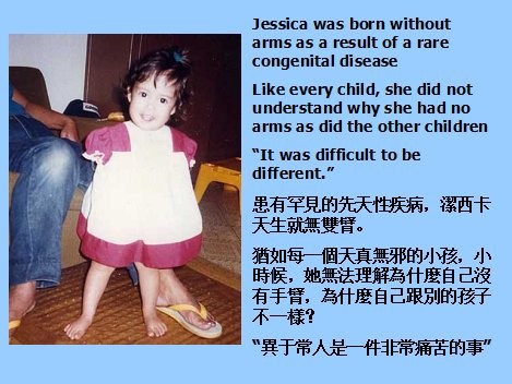 <03> Jessica was born without arms as a result of a rare congenital disease.
