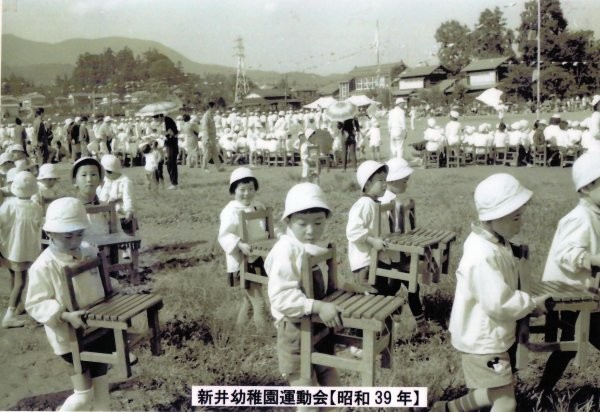 The second picture was taken in 1964 (Showa 39), when Tokyo Olympics was held. It is “the joint athletic meet of Arai ES and Arai Kindergarten”. Yoshy was in the third grade of Arai JHS then.