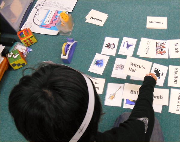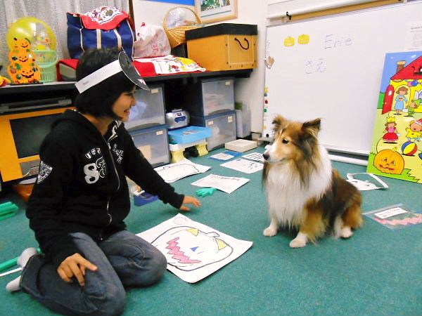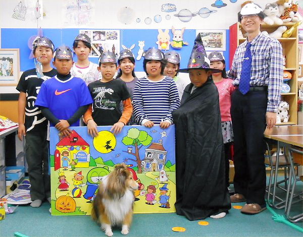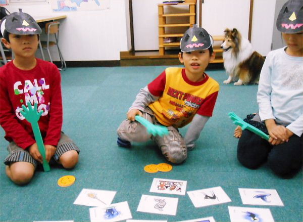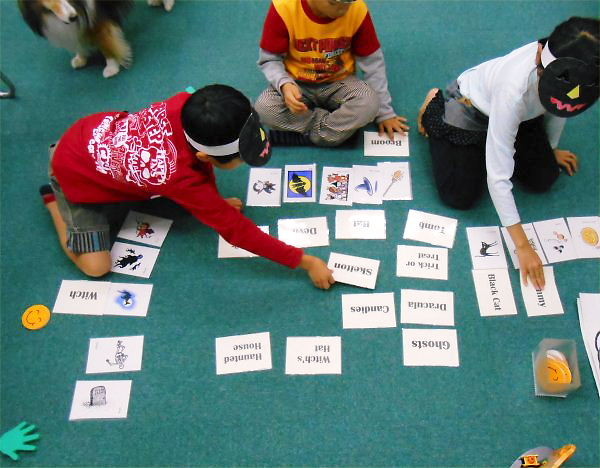 We did several merry games、in which “Filling words in the story of Halloween” and “Discovering some attraction of using various kinds of English dictionaries”; which were today’s main games!