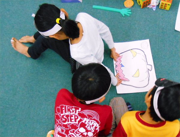 They experienced various games in which there were usual “Swatting Halloween Characters”, “Making Face of Jack-‘o-Lantern”, “Making the Mask of Jack-‘o-Lantern”, etc. And some classes could carry “A set of mobile of Ghosts, which could be made by his/her family” back home.