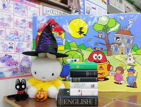 数種の楽しいゲームをした中でのメインは、「ハロウィーン説明英文の穴埋めゲーム」と、「様々な英語辞典の魅力発見」でした。