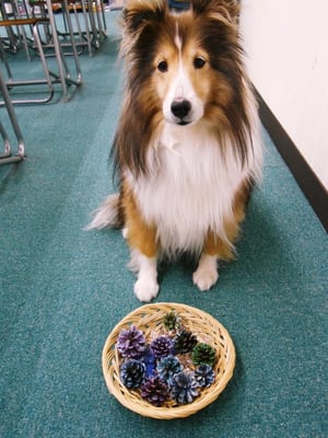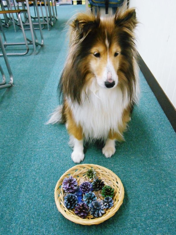 On Tuesday, November 13th, while walking with Erie, Yoshy picked up many pinecones.