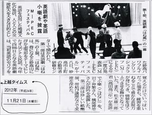 第6回M-PEC Festivalでの英語劇:「はね馬」の録画を、You can watch You-Tube of “Hane-Uma: Prancer” by clicking HERE:ここをクリックなさってください。