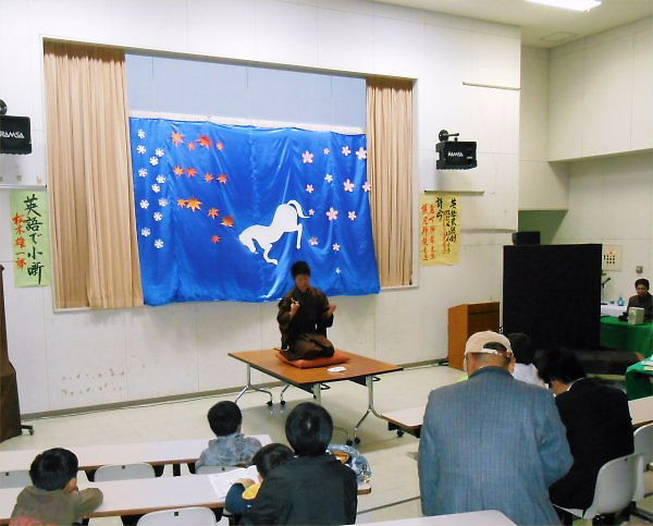 That day, one of LL students of LL Shihoya Arai School, Yuichiro Matsuki (3rd grader of Takada Senior High School) performed rakugo-styled funny and short story, which made the audience surprised and moved a lot. The other adult-members can't do it yet, though.
