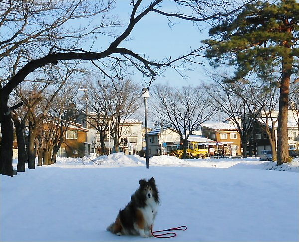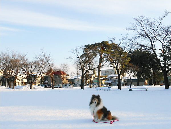 1枚目:エリーがゲートボール場にいます。奥に緑色の横向き看板がある場所が、LLシホヤ新井教室の西側入り口です。