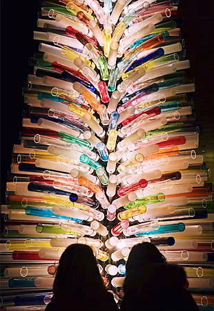 Venice 's Murano Island renowned throughout the world for its quality glasswork is home to the tallest glass tree in the world. Sculpted by master glass blower Simone Cenedese, the artistic Christmas tree is a modern reflection of the holiday season.