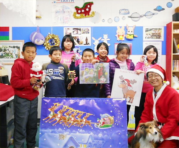 どのクラスも、Rが作ってくれた「クリスマス・キャンディの袋」をもらって、記念撮影をしました。