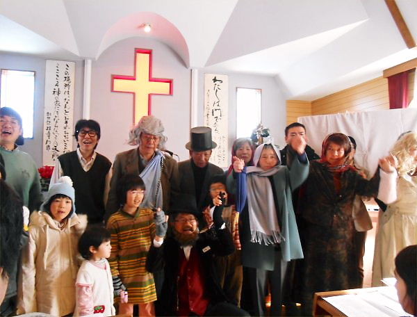 Scrooge in “Christmas Carol” (Original writer: Charles Dickens) was performed by Mr. N who put lots of spirit into his role. Yoshy was moved by the power and deep cooperative spirit among about twenty members of the cast; they must have made their own clothes and practiced very seriously.