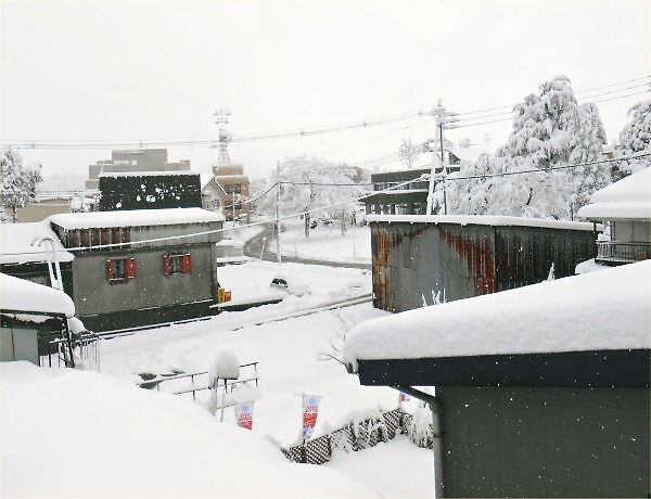 The second one shows the scene taken from the first floor under LL Shihoya Arai School toward Myoko Cultural Hall.