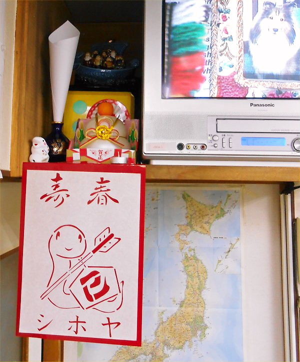 With an easy mind, Yoshy could set the home-shrine beside a blackboard of LL Shihoya Arai School.