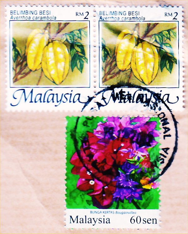 外国友人からもたくさん年賀状を頂きました。ありがとうございました。ニュージーランドのMr. IとマレーシアのMs. Yからの年賀状に貼ってあった切手です。