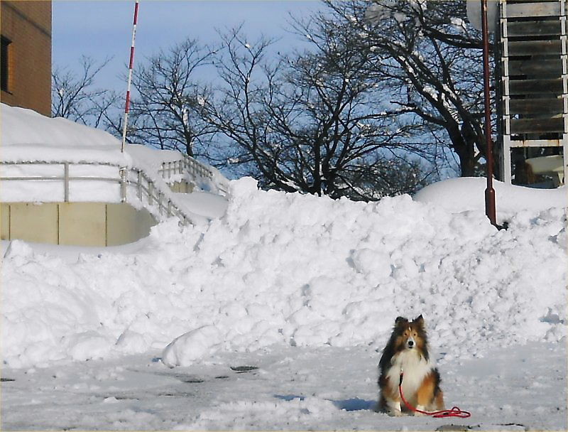 Yoshy got up earlier than usual this morning. It cleared up changing from yesterday’s heavy snowfall.