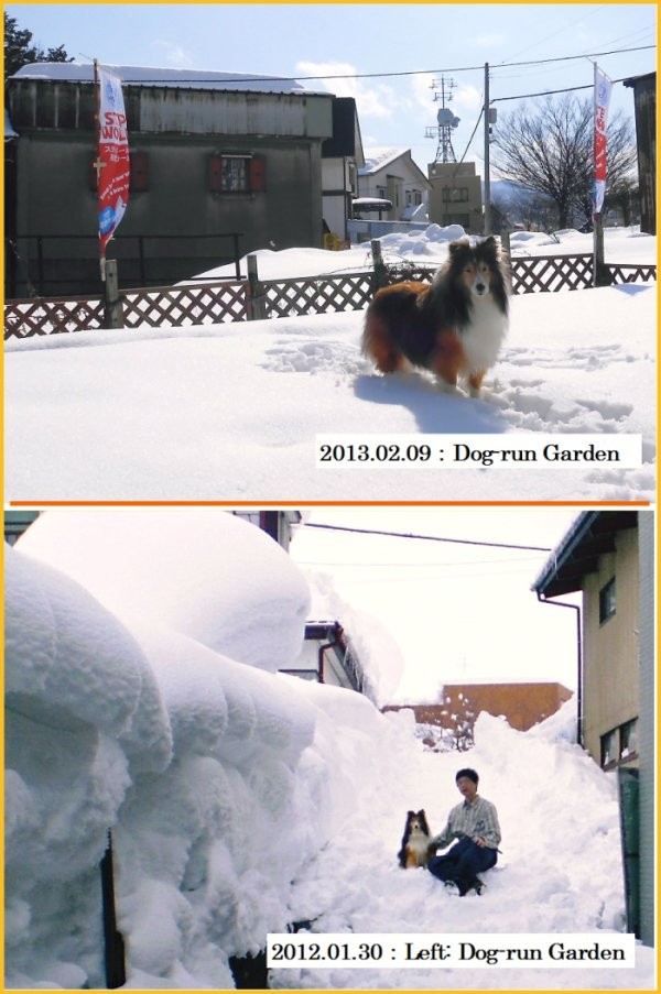 LLシホヤ新井教室庭の積雪、去年はどのくらいだったか、写真を並べてみました。