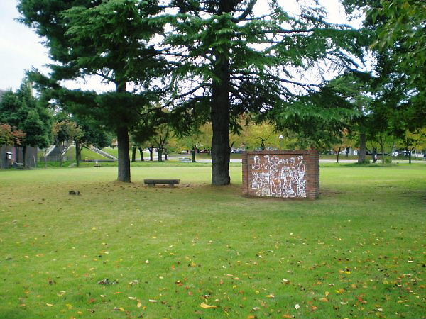 This should be called not so much a monument as a memorial work, Yoshy thinks. It stands between LL Shihoya Arai School and Myoko Cultural Hall.
