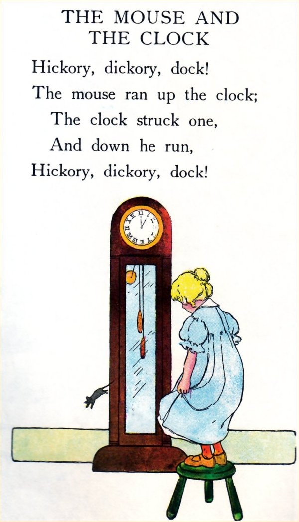 We were singing “Hickory Dickory Dick: A Mouse and A Clock” of Mother Goose in a class last week.