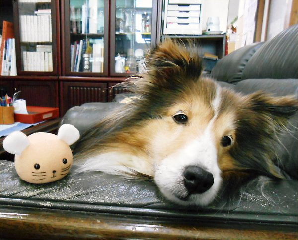 While Yoshy was sewing, Erie fell asleep… as soon as I said to her, “Hey, down the mouse run!” she awoke with dozy eyes.
