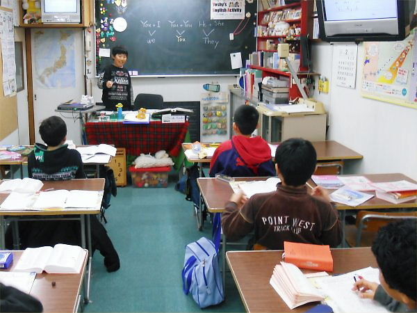 In the class at the level of 5th of Eiken Testing, When Yoshy teaches “There are three persons in English World”, first of all by using a body-language way.