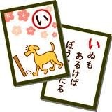 平安時代末期の「百人一首」にならって考案されました。作者は明らかではありませんが、江戸時代末期に京都で作られて阪神地方に広がり、ついで一部改変されて江戸に伝えられ、やがて全国に流行してゆきました。いろは48文字の1字ずつを頭につけて軽妙な比喩や教訓の文句が書いてあります。正月などの子供の遊びとして広く流行りました。