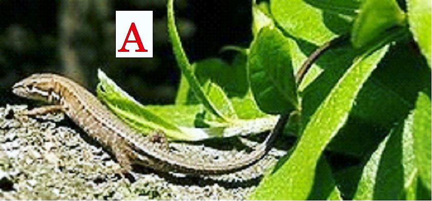 どうやら、「かなちょろ」は、当地の方言のようです。正式名は、「ニホン・カナヘビ」のことだと思います。(写真:A)