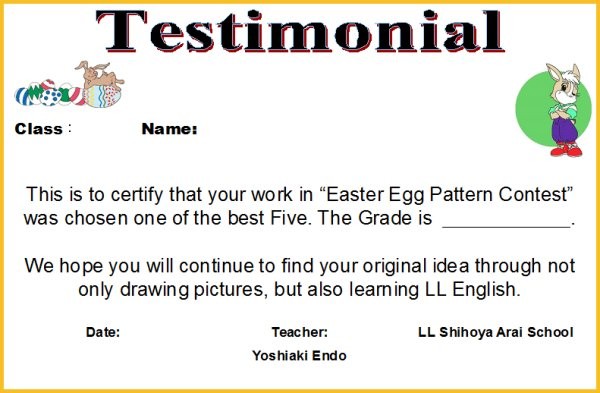 This is to certify that your work in “Easter Egg Pattern Contest” was chosen one of the best Five. The Grade is The Best / Excellent.