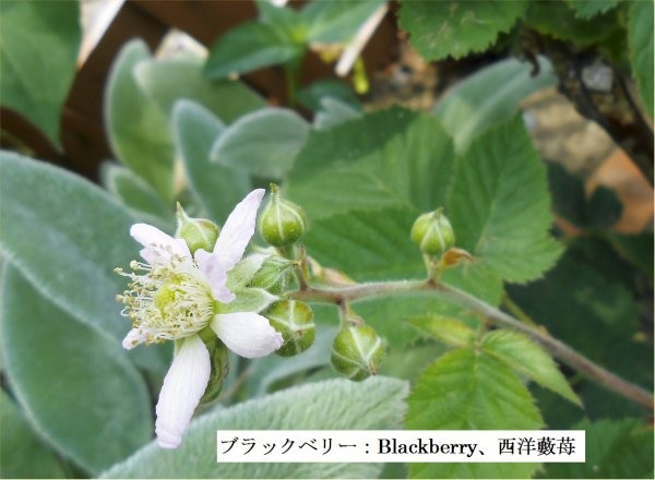 「ブラックベリー」:英語表記は、Blackberry、和名は「西洋藪苺」(セイヨウヤブイチゴ)、花ことばは、「繊細な美」。