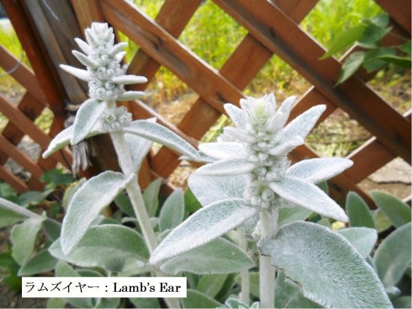 「ラムズイヤー」:英語表記は、Lambs’ Ear、花ことばは、「あなたに従います。」