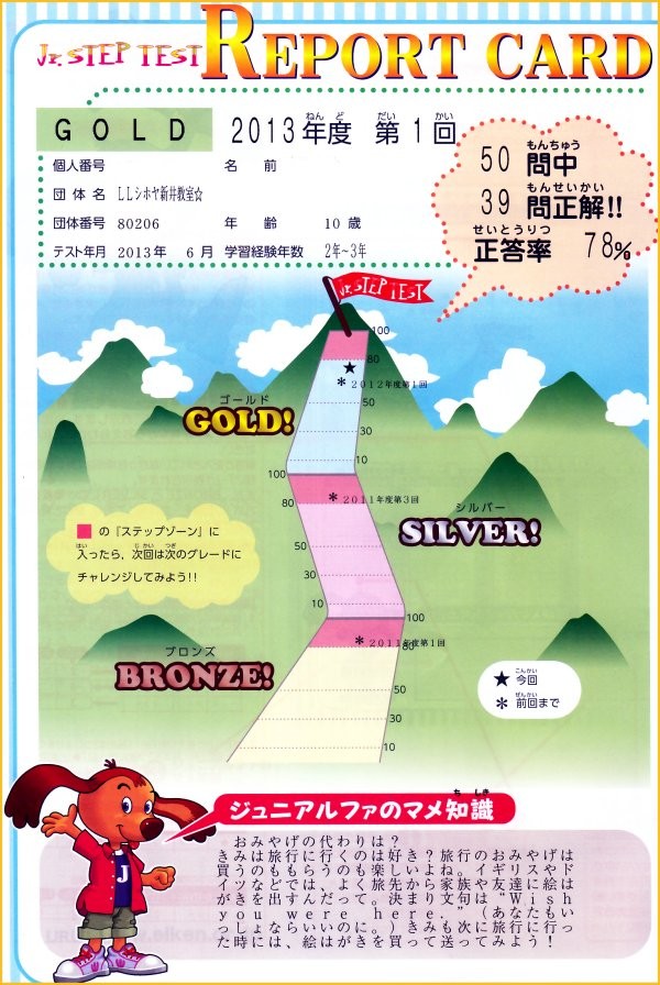 ほとんどのLL生徒は、GOLD受験のErieちゃん(仮称)のように、順調にグレードが上がってゆき、「レポート、まだ来ない?」と…、楽しみにしています。