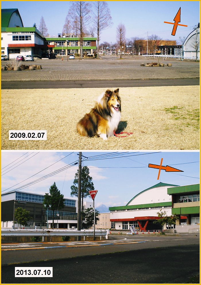 エリーが座っている場所は、今は、7月7日(日)に落成した新市民体育館の駐車場になっています。