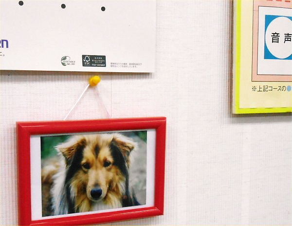 今年度は、「両側の壁にエル(先代のシェルティー犬)と、エリー(今のシェルティー犬)」の写真を貼りました。