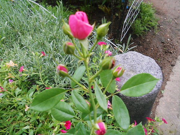 Thanks to R’s efforts, not only such common vegetables, but also lots of flowers and herbs are in full swing just now. Yoshy is learning the names of those flowers and herbs.