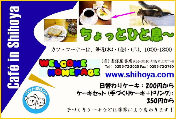カフェコーナーのご案内は、You can see the information of Café in Shihoya by clicking:HERE:ここをクリックなさってください。