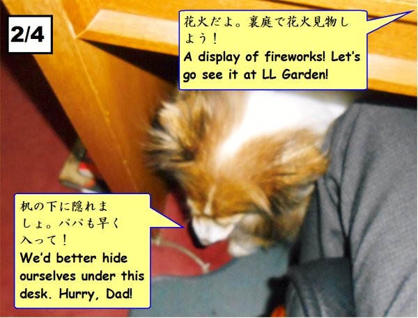 4コマ漫画:「花火とエリー」:A Four-frame Cartoon, “Fireworks and Erie”