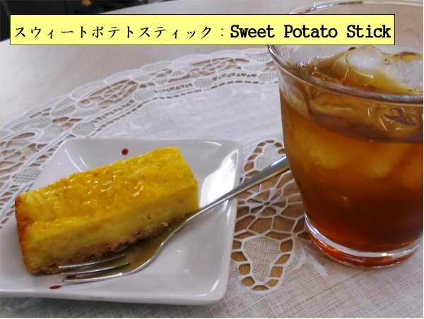 8月22日(木)の「今日の手作りケーキ」は、「スウィートポテトスティック」と、「胡桃(くるみ)と人参のパウンドケーキ」でした。
