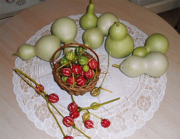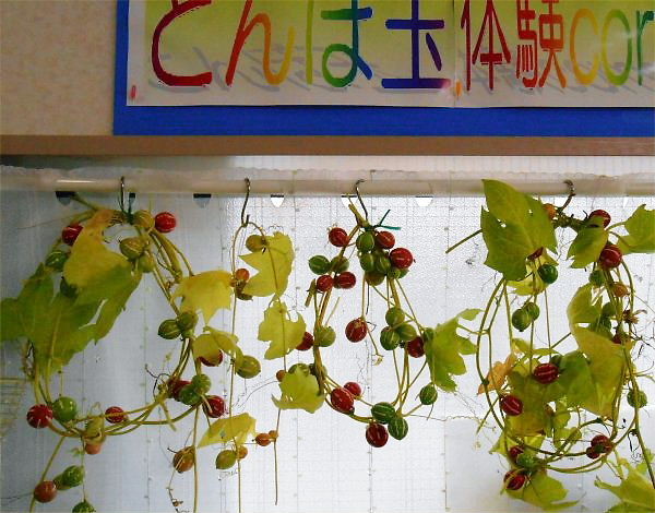 早速、Rは「とんぼ玉コーナー」にオキナワスズメウリを飾りました。