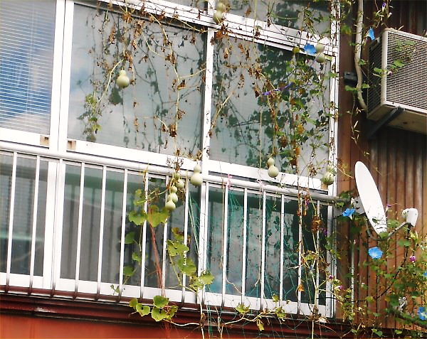 Yoshy and R removed gourds, morning-glories and native bryonies which had helped us as green curtains.