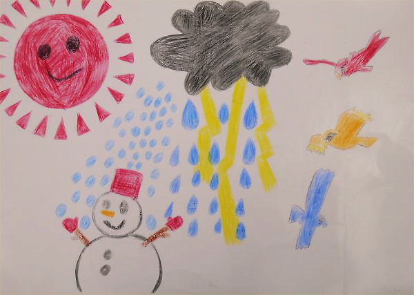 課題文の一つ、「天気を感じよう!」の絵を描いて持ってきた子もいました。